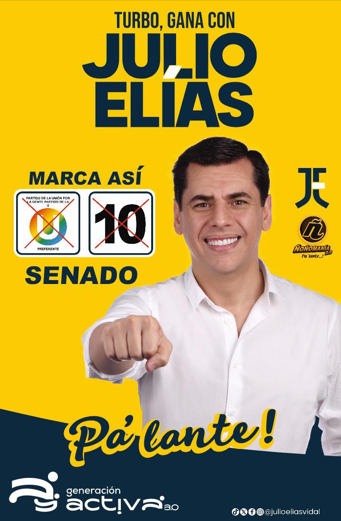 El distrito de Turbo no es ajeno a esta corriente, en ese sentido, ha surgido un equipo de gente joven, dinámica y con experiencia política que pretenden un cambio efectivo en las costumbres políticas del puerto. Son ciudadanos que en su mayoría venían militando en los movimientos Valientes y Llenos de Fé, pero que han decidido armar tolda aparte y para eso vienen trabajando fuertemente por la reelección del senador cordobés del partido de la U, Julio Elias Vidal.